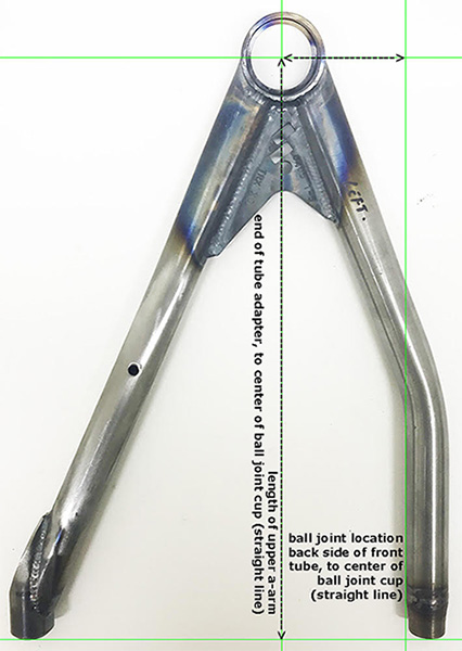 Measure from the edge of the ball joint cup to the outside edge of the square, do this on the lower and upper a-arm